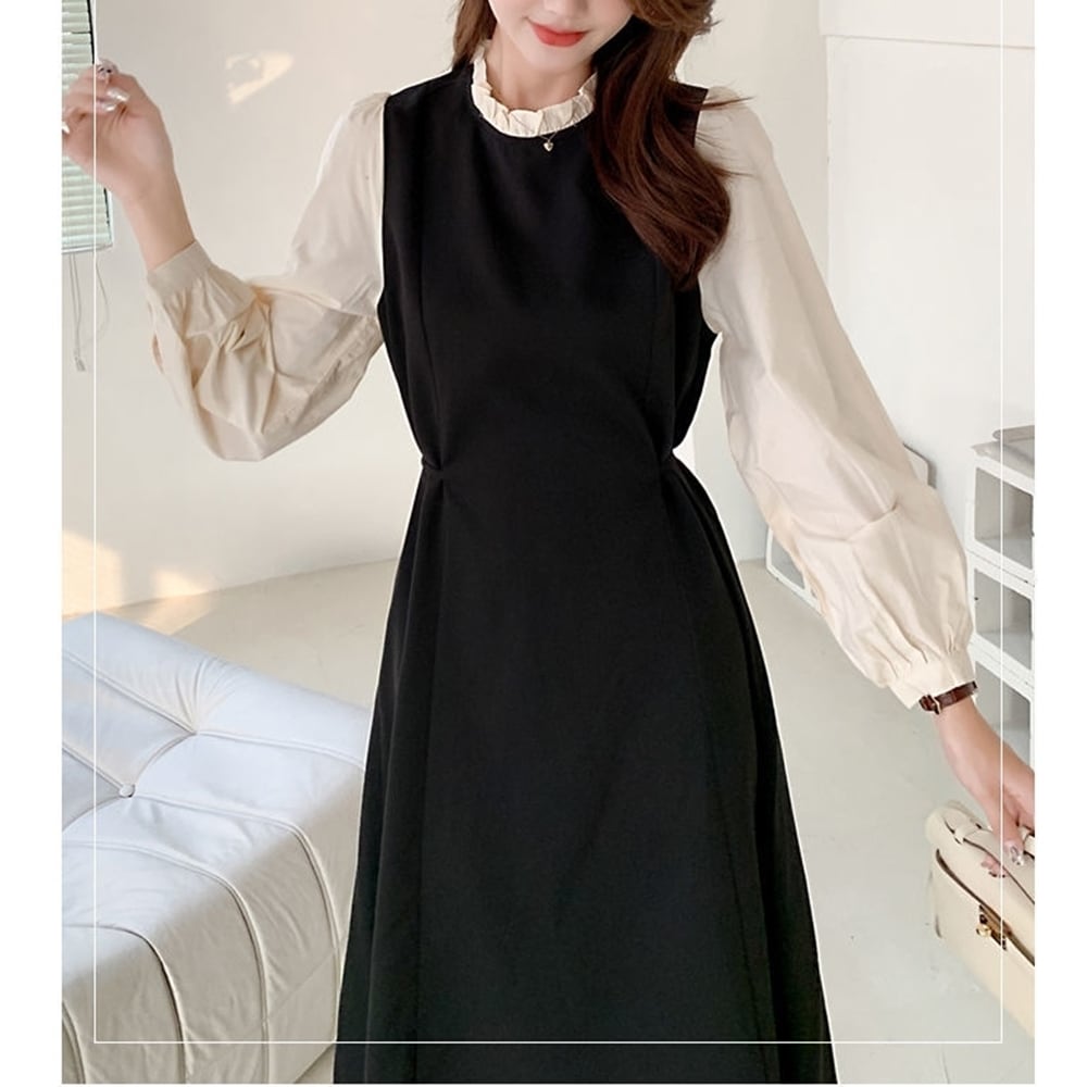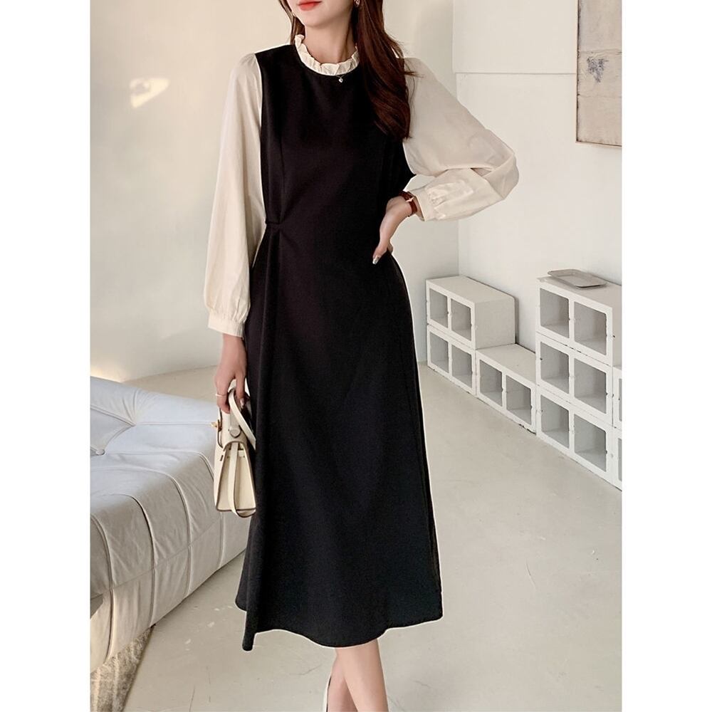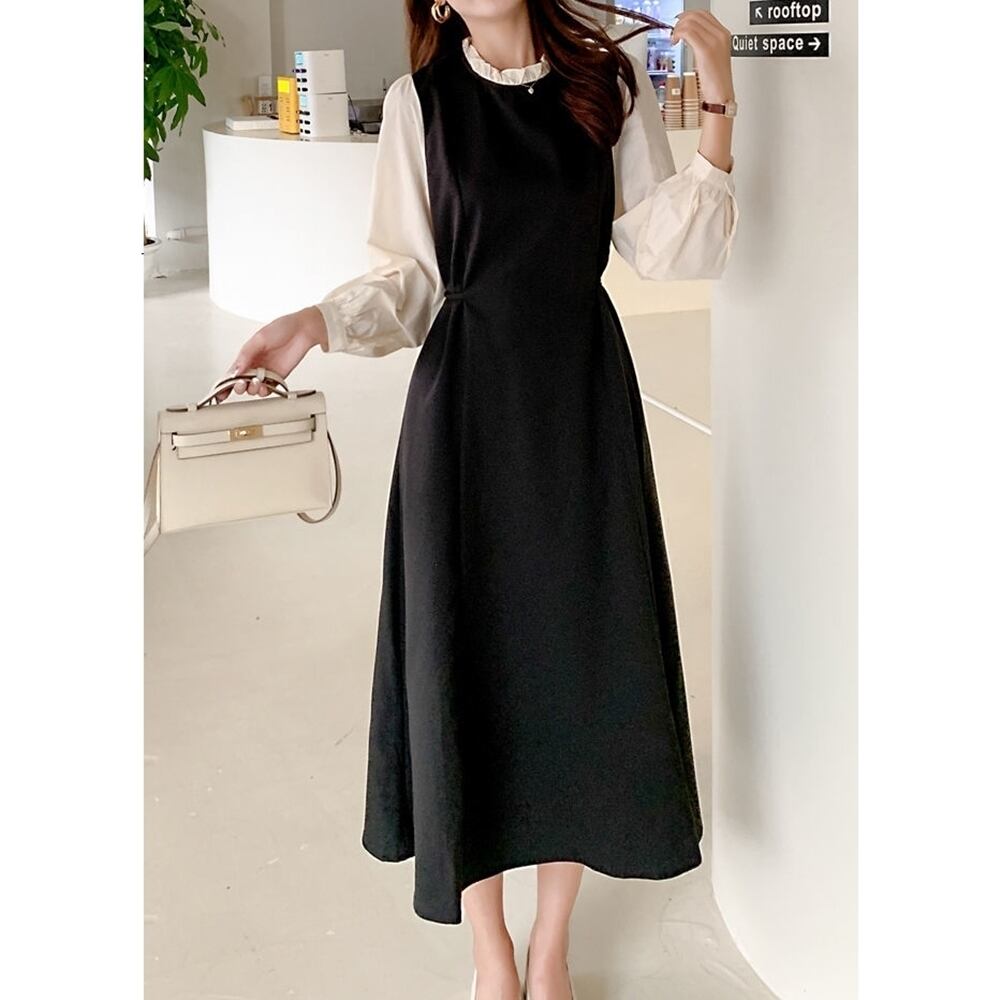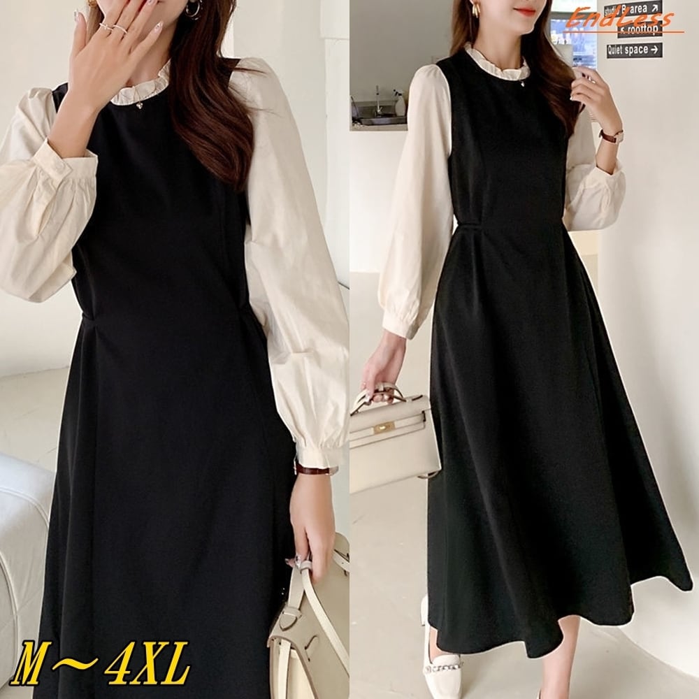 【 送料無料 】 プラスサイズ ウエスト細見え 長袖 ワンピース バブル ドレス ブラック 黒 春 秋 大きいサイズの店 大きいサイズ 安い 海外 店舗 通販 4xl ロング きれいめ コーデ かわいい 可愛い スカート 10l 9l 8l 7l 6l 5l 4l 3l M1725