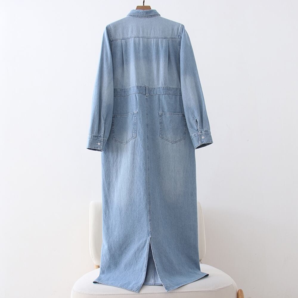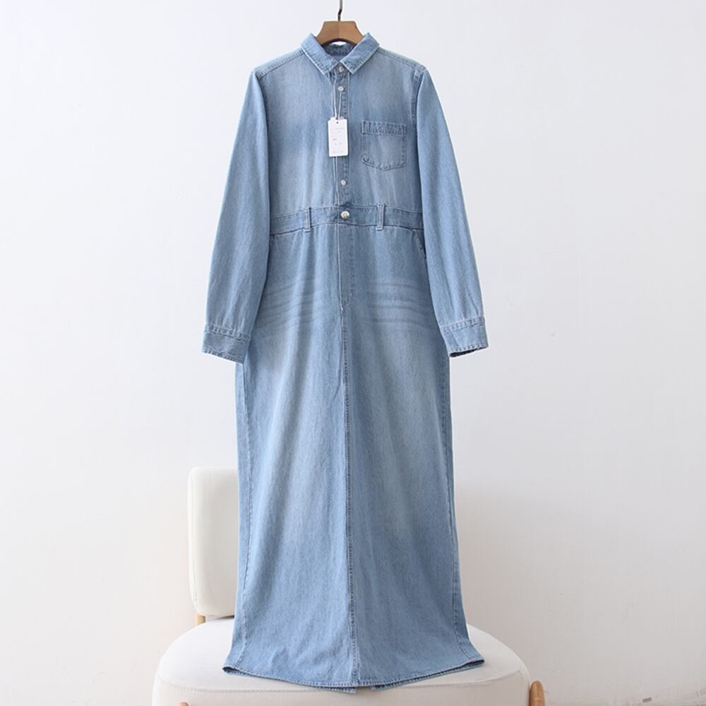 【 送料無料 】 ストレート ゆったり デニム ワンピース 長袖 ロング ダメージ ブルー 春 秋 大きいサイズの店 大きいサイズ 安い 海外 店舗 通販 4xl ロング シャツ スカート セットアップ きれいめ コーデ かわいい 可愛い オフィス 着痩せ 10l 9l 8l 7l 6l 5l 4l 3l M1728