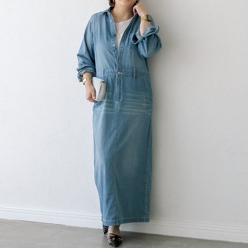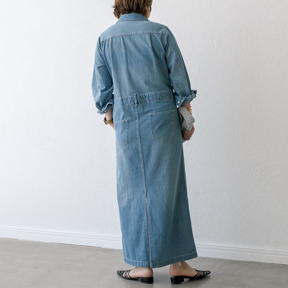 ・ワンサイズ 長袖 デニム ロングスカートワンピースです。