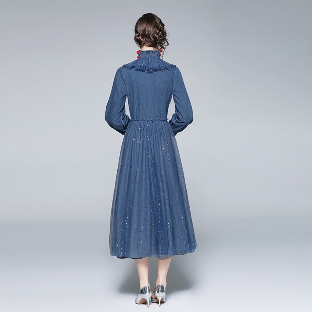 【 送料無料 】デニム スタンドカラー レース ドレス ワンピース ブルー 春 秋 大きいサイズの店 大きいサイズ 安い 海外 店舗 通販 4xl おしゃれ きれいめ ジーンズ 重ね着 フリーク コーデ コレボ 生地 ロング 大柄 可愛い かわいい 10l 9l 8l 7l 6l 5l 4l 3l M1735
